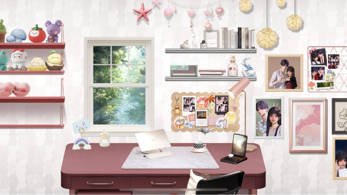 But in LaDS, I have all the control. I get to decide what kind of desk I want, what kind of wall decorations, and of course, include a pegboard filled with all the photos Rafayel and I have taken at the photobooth. To the left are four shelves that hold all of the plushies we’ve caught at the claw machine. While I’ve decorated Xavier and Zayne’s rooms as well, I think it’s very clear that Rafayel’s my favourite.